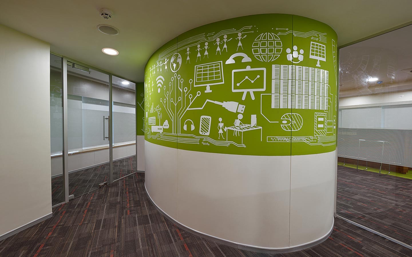 Aspiring to get LEED PLATINUM certification by the US Green Council, this project was completed using materials like ACP & glazing with wooden finish verticals and terracotta tiles for floor works.