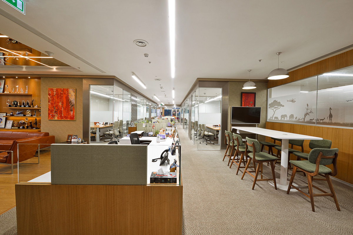 Thomas Cook is a travel agency with its presence world-wide. ANA’s design concept was developed trough gaining experience of the world and representing the same metaphorically. Infusing creativity with the workspace, the picture of the seven continents were projected throughout the office projecting the idea of the travel subtly.